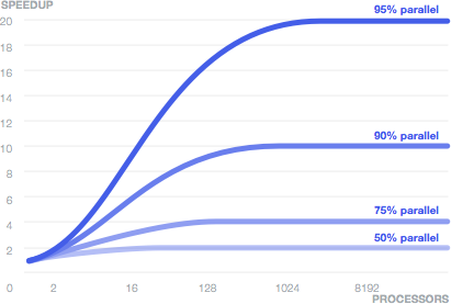 Acceleration of a program by paralleling it is limited to a sequential part of the program. For example, if 95% of the computation volume can be paralleled, the theoretical maximum of acceleration cannot exceed 20, regardless of the number of processors used.